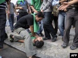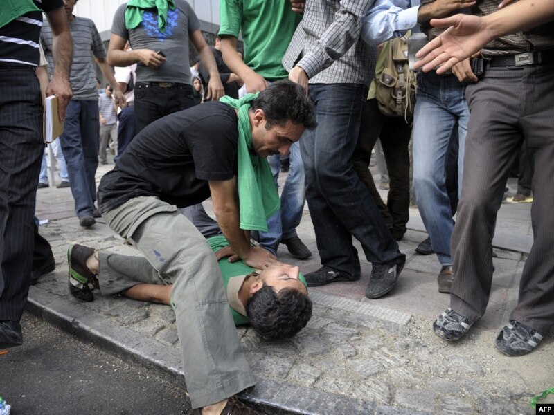 Başqa bir yerdə keçirilən nümayişdə isə nümayişçilər polisi yerə yıxaraq döyürdülər. Soyadını demək istəməyən tələbə, Mehrdad deyir ki, «onlar öz nəticələri ilə bizi təhqir etdilər». Onun yanındakı başqa biri isə «Biz Musəvini istəyirik» dedi.