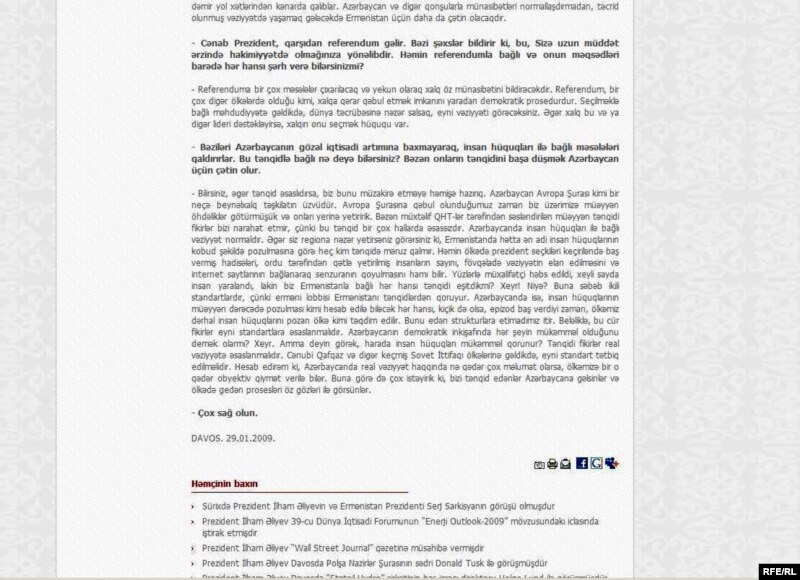Ilham Əliyevin dedikləri "Reuters"in internet səhifəsində
