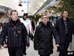 Rusiya prezidentinin dəvəti ilə Azərbaycan və Ermənistan prezidentləri «Krasnaya Polyana» dağ xizək kompleksində də olublar.