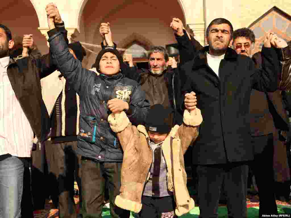 Mərasimdə çıxış edənlər hicaba qarşı çıxanların əleyhinə «Ar olsun!», «Allahu Əkbər!» şüarları səsləndiriblər