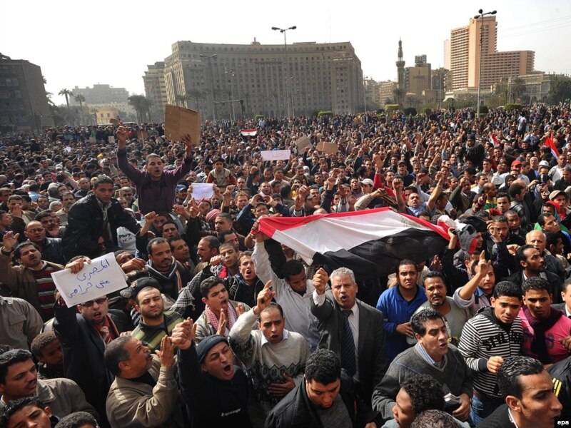 Полицейские применяют огнестрельное оружие, стреляя вблизи протестующих. В район главной площади - Тахрир - снова стягиваются десятки тысяч египтян. Они выкрикивают лозунг "Уходи", требуя отставки президента Хосни Мубарака.