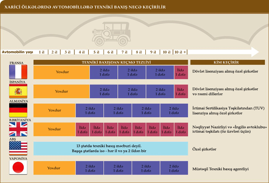 Maşını olan hər kəsin ildə bir dəfə məcburi şəkildə yaşamalı olduğu bu əsəbi prosesin başqa ölkələrdə necə və neçəyə başa gəldiyi ilə maraqlandıq.