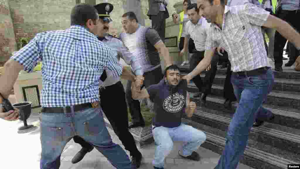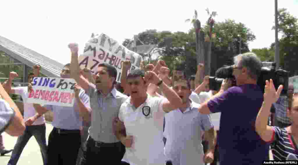 Mayın 21-də İctimai Palataya daxil olan müxalifət partiyalarının fəalları Bakının mərkəzində etiraz aksiyası keçirib. Onlar «Azadlıq!», «İstefa!», «Korrupsiyaya yox!» şüarları səsləndiriblər. Fotolar AzadlıqRadiosu və Reuters-ə məxsusdur