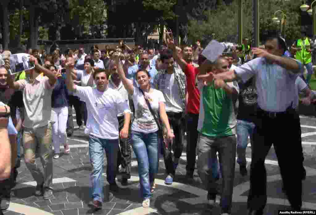 Mayın 21-də İctimai Palataya daxil olan müxalifət partiyalarının fəalları Bakının mərkəzində etiraz aksiyası keçirib. Onlar «Azadlıq!», «İstefa!», «Korrupsiyaya yox!» şüarları səsləndiriblər. Fotolar AzadlıqRadiosu və Reuters-ə məxsusdur