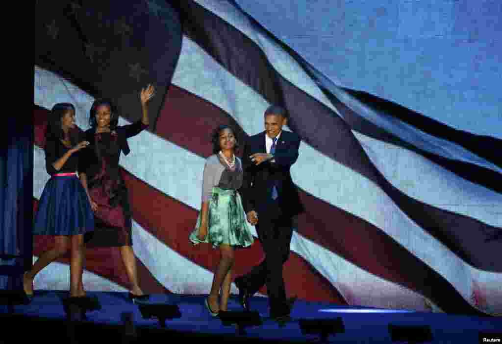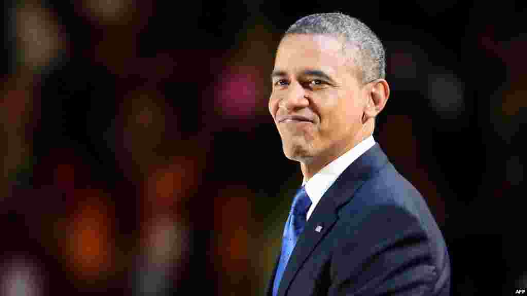 Barack Obama tərəfdarları Çikaqoda şənlik edir. Prezident onlara təşəkkür edib