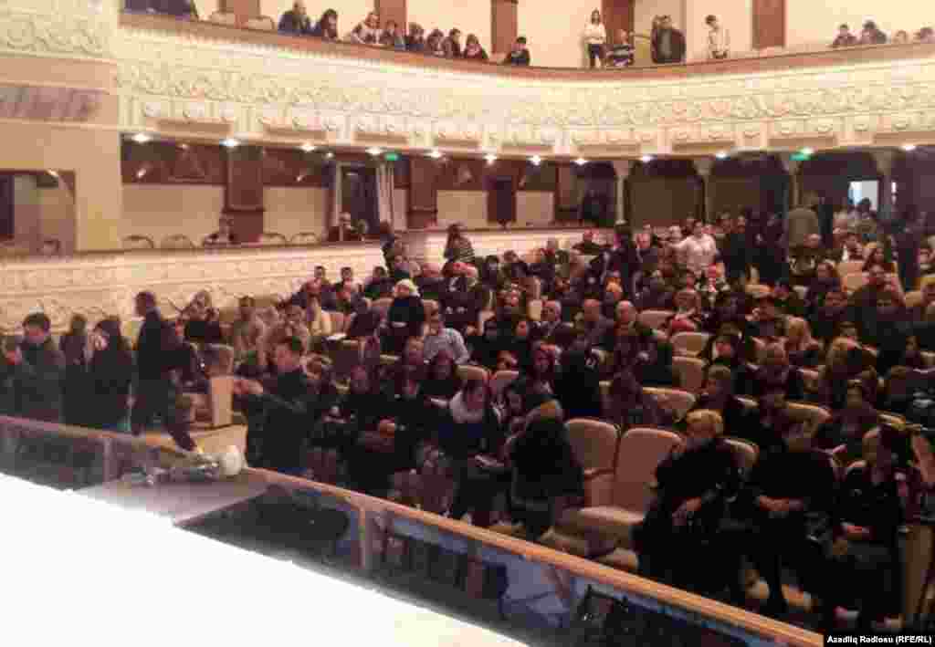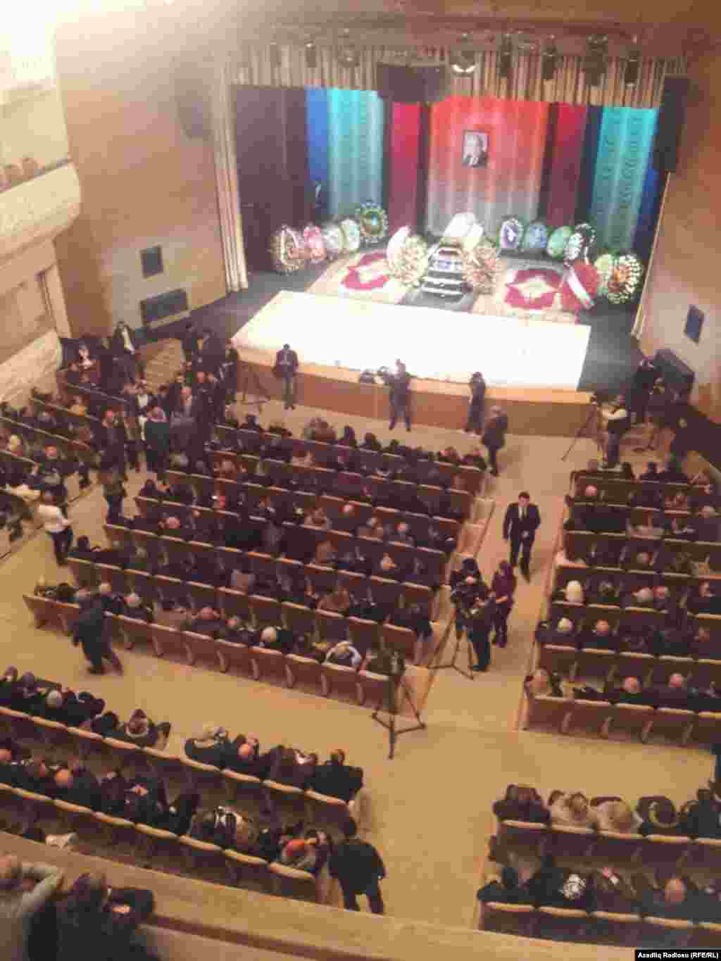 На церемонии прощания с народным артистом Азербайджана участвуют родные покойного, его друзья и представители общественности