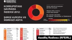 AZƏRBAYCAN YENƏ QAFQAZIN ƏN RÜŞVƏTXORU OLDUBeynəlxalq Şəffaflıq Təşkilatı - Transparency İnternational-ın 2012-ci ilə dair yeni yaydığı “Korrupsiya Qavrama İndeksi”ndə Azərbaycana 100 mümkün baldan 27-si verilir. Ölkələr üzrə sıralamada isə Azərbaycan 176 ölkə arasında 139-cu sırada göstərilir.