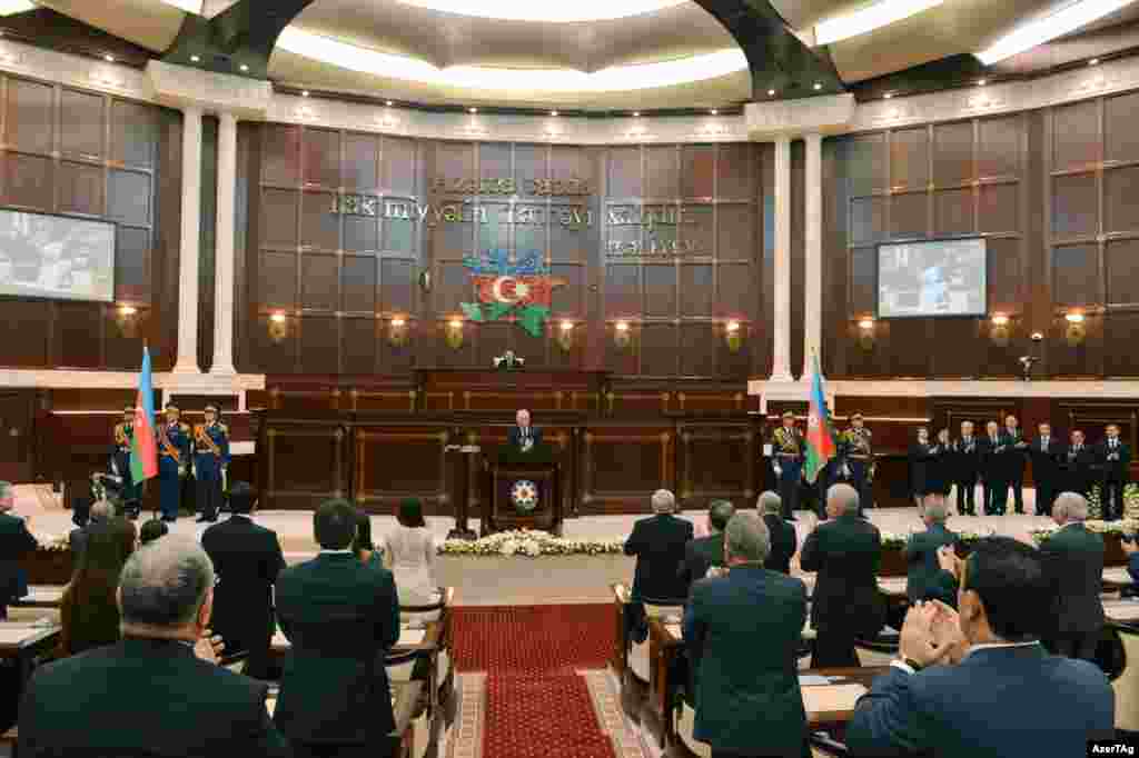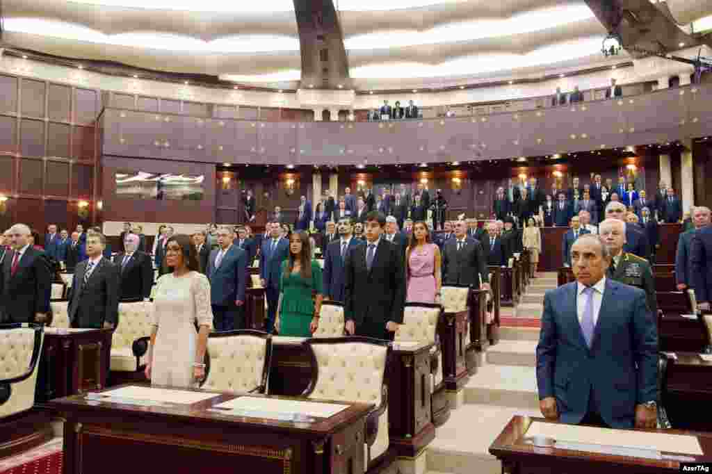 Oktyabrın 19-da Milli Məclisdə prezident İlham Əliyevin andiçmə mərasimi keçirilib. Mərasimdə Azərbaycanın dövlət rəsmiləri, hökumətin üzvləri, Milli Məclisin deputatları və Prezidentin ailə üzvləri iştirak ediblər. Fotolar AzərTAC-a məxsusdur.