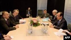 Noyabrın 29-da Vilnüs sammitinin gedişində Azərbaycan və Fransa prezidentləri də görüşüblər. AFP agentliyinin fotosu: