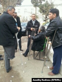 Müxbir bildirir ki, Qarabağ əlilləri xəstəxana önünə toplaşıb. Onlar ağır vəziyyətdə olan yoldaşlarından xəbər gözləyir, onu bu vəziyyətə gətirən məmurların cəzalandırılmasını tələb edirlər.