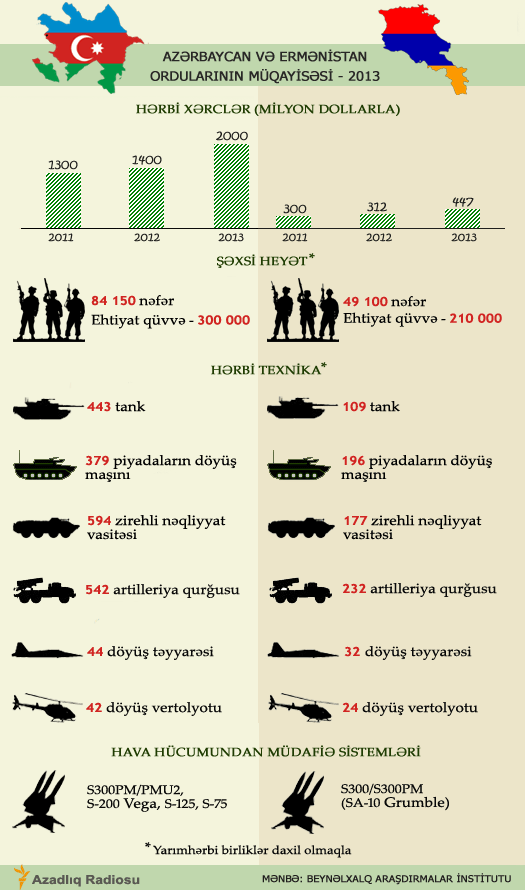 Bu sənədə əsasən Azərbaycan və Ermənistan silahlı qüvvələri arasında ümumi göstəricilər əsasında müqayisə aşağıdakı şəkildədir: