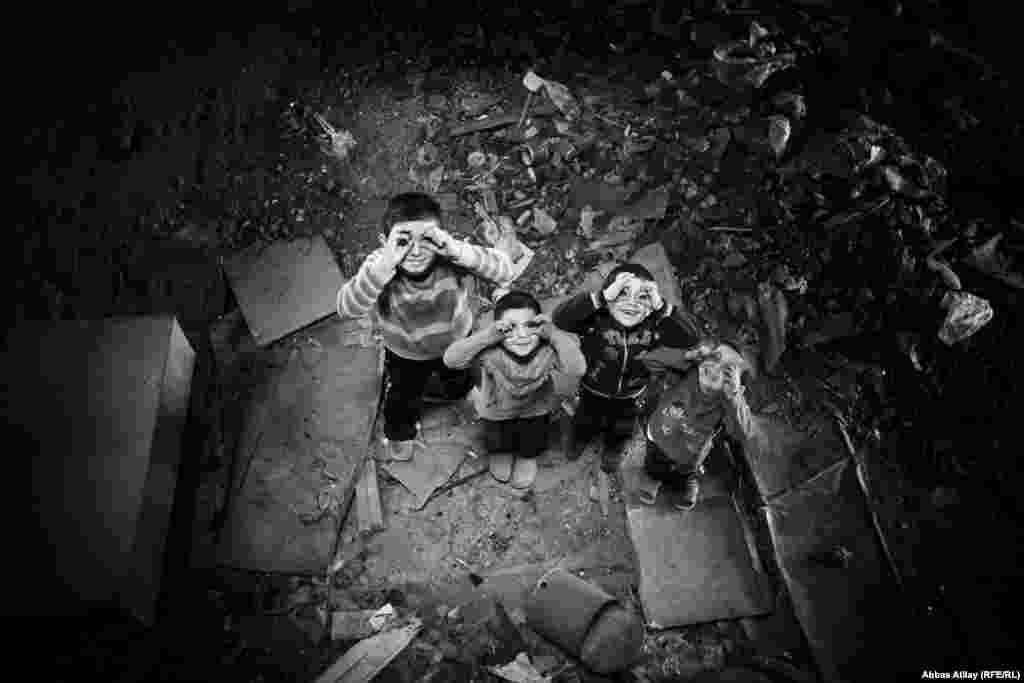 Müharibə zonasını xatırladan bu görüntüləri Abbas Atilay Binəqədi rayonunda vaxtı ilə Təcili Tibbi Yardım üçün tikilməyə başlamış, yarımçıq binada - Xocalıdan didərgin düşmüş məcburi köçkünlərin sığınacağında çəkib.