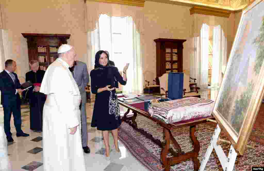 İtaliyada səfərdə olan Azərbaycanın birinci xanımı, Heydər Əliyev Fondunun prezidenti Mehriban Əliyeva iyunun 2-də Roma Papası Francis ilə görüşüb.