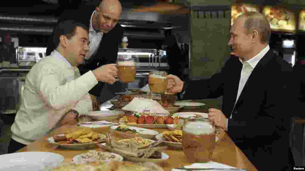 Rusiya prezidenti Vladimir Putinlə Baş nazir Dmitry Medvedev prezident və baş nazir kürsüsünü illərlə bir-birinə ötürüb həm də lətifələrə, tənqidlərə mövzu oldular. Onlar kamera qarşısında da olduqca mehriban görünürlər. Bu ikilinin müxtəlif illərdə çəkilmiş bir-birindən maraqlı fotolarını təqdim edirik.