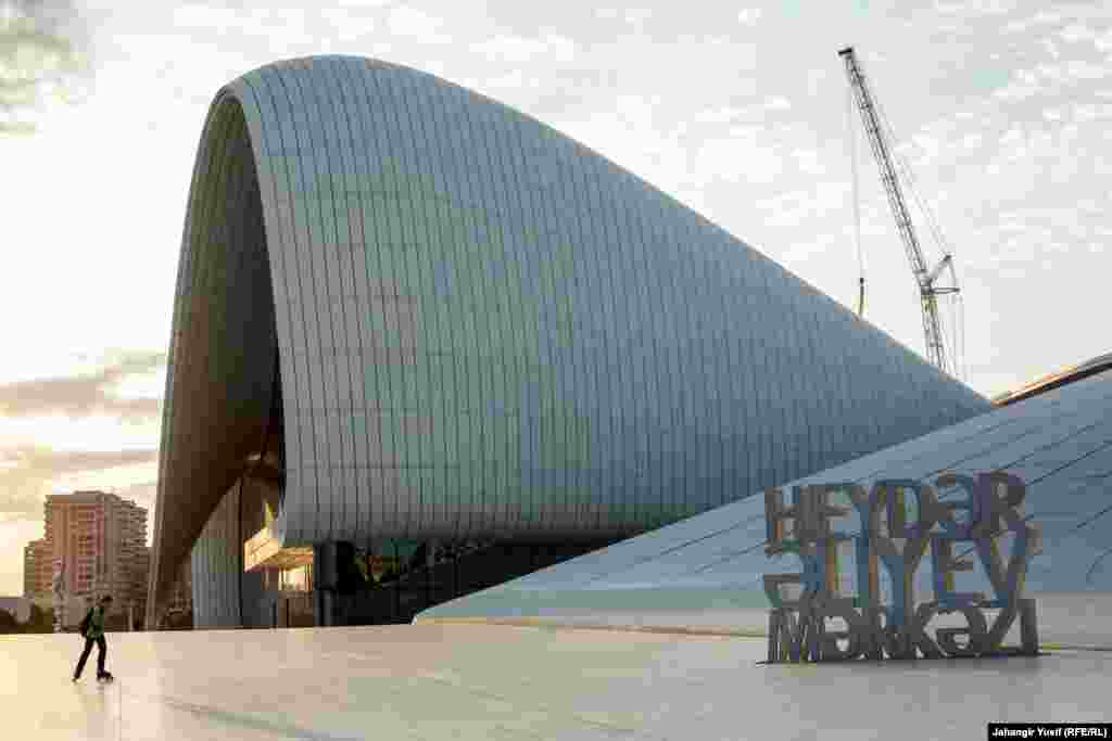 Tikintisi 2007-də başlanan və 2012-ci ildə bitən Heydər Əliyev Mərkəzinin memarı Zaha Hadiddir. Memarlıq özəllikləri yüksək qiymətləndirilən Mərkəz insan haqları pozuntularından dolayı beynəlxalq mediada tənqid olunur. Fotolar Cahangir Yisifə məxsusdur.