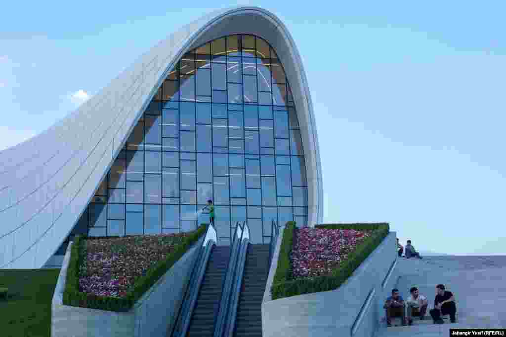 Tikintisi 2007-də başlanan və 2012-ci ildə bitən Heydər Əliyev Mərkəzinin memarı Zaha Hadiddir. Memarlıq özəllikləri yüksək qiymətləndirilən Mərkəz insan haqları pozuntularından dolayı beynəlxalq mediada tənqid olunur. Fotolar Cahangir Yisifə məxsusdur.