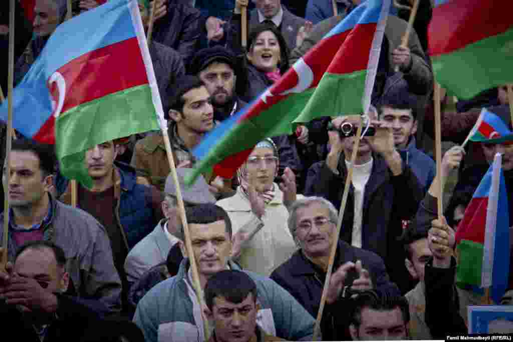 Noyabrın 9-da paytaxtın hər bir tərəfi bayraqlara büründü. Bakı bir yanda Bayraq gününü qeyd etdi, başqa bir yanda bayraqla etiraz günü etdi. Demokratik qüvvələrin Milli Şurası siyasi məhbuslara azadlıq tələbi ilə mitinq keçirdi. 2 saatlıq mitinq necə keçdi? Famil Mahmudbəylinin fotolarında.