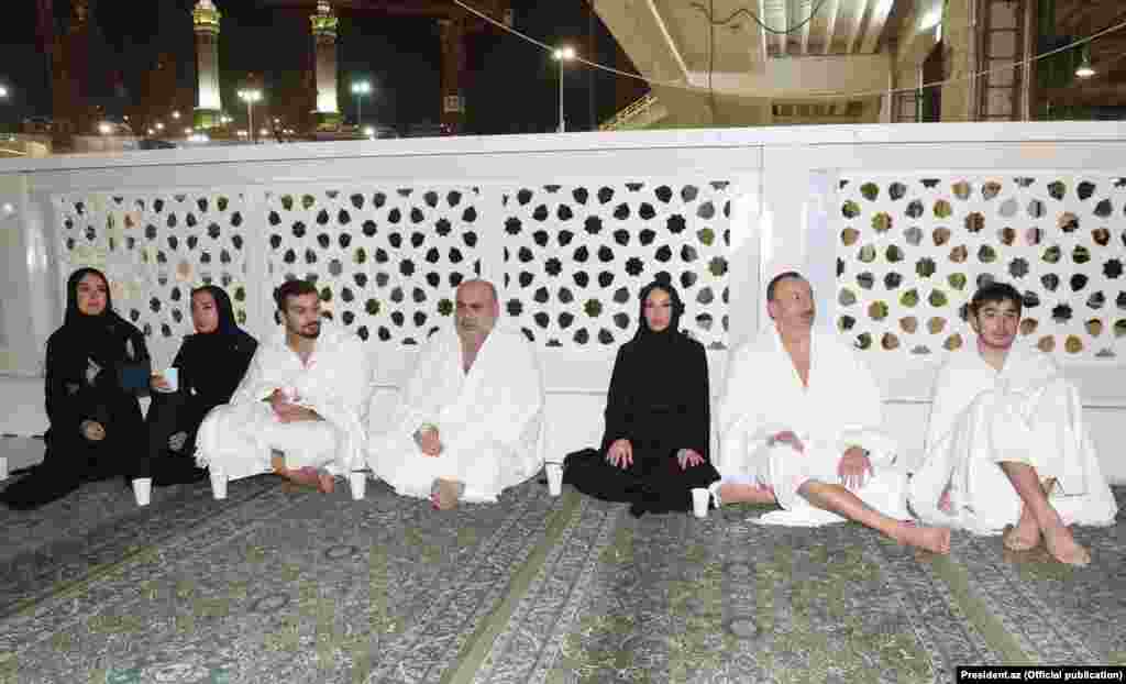 İlham Əliyev, xanımı Mehriban Əliyeva və ailə üzvləri xüsusi libas geyinərək Əl-Həram məscidinə gəliblər.