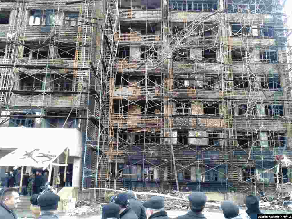 Yanğın axşama doğru binanın fasadının təmiri ilə bağlı qurulmuş taxta konstruksiyalarda başlayıb. Güclü külək olduğundan alov tez yayılıb.