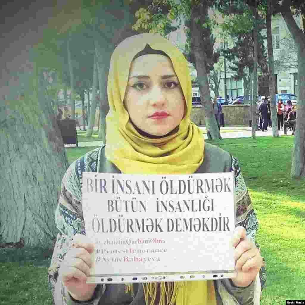 Facebook-da qadınlar «Cəhalətin qurbanı olma» şüarı ilə aksiya başladıblar. Azərbaycanda qətlə yetirilmiş gənc qız Aytac Babayevanın ölümü təkcə Azərbaycanda deyil, Türkiyədə də qəzəb və kədərlə qarşılanıb.