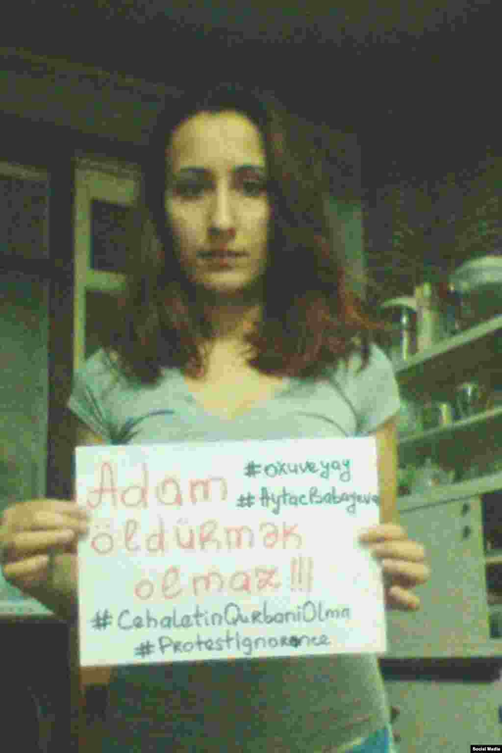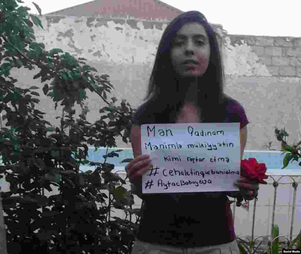 Facebook-da qadınlar «Cəhalətin qurbanı olma» şüarı ilə aksiya başladıblar. ‪‎Azərbaycanda qətlə yetirilmiş gənc qız Aytac Babayevanın ölümü təkcə Azərbaycanda deyil, Türkiyədə də qəzəb və kədərlə qarşılanıb.