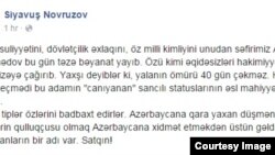 Adil Məmmədovun statusuna YAP-ın icra katibinin müavini, millət vəkili Siyavuş Novruz öz facebook hesabında statusla cavab yazıb. A.Məmmədovu satqın adlanıdırb: