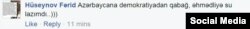 Bu xəbərə Facebook-da maraqlı bir şərh yazıblar