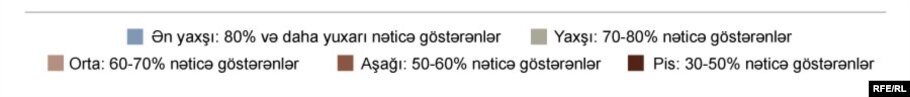 Bölgələr arasında isə Naftalan şəhərinin 11-ciləri hamıdan yuxarı - 91.3 faiz, Sabirabad rayonu isə hamıdan az - 30.82 faiz nəticə göstəriblər.