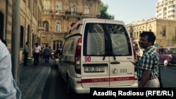 Məhkəmə binasının yaxınlığında təcili yardım maşını var. Dünənki prosesdə Arif Yunusun səhhəti pisləşmişdi, həkim briqadası çağırılmışdı.