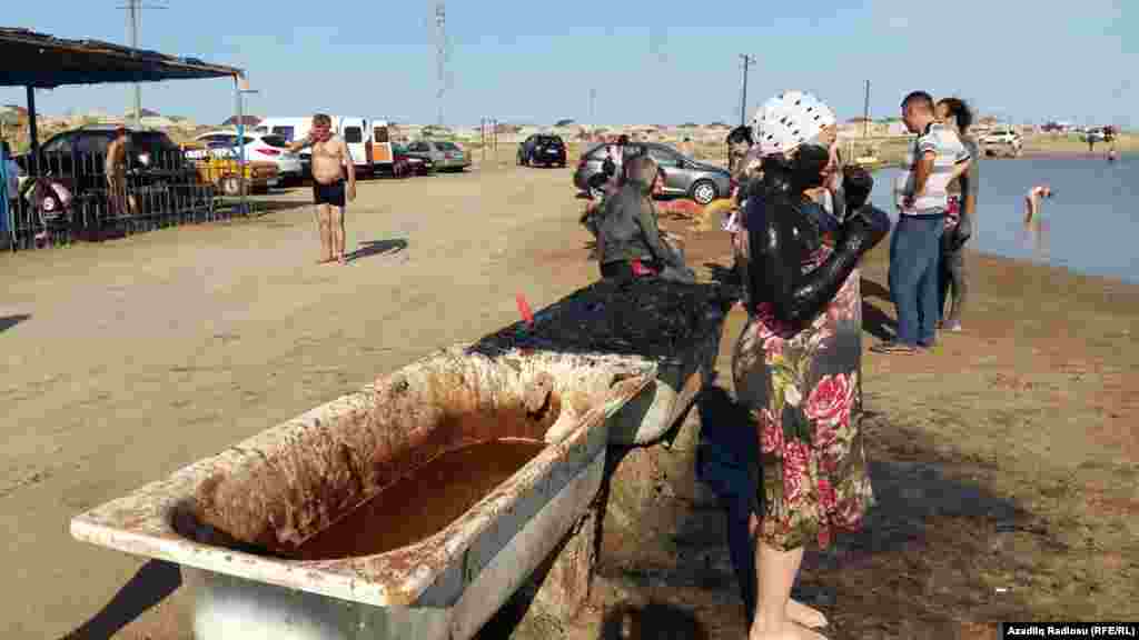 Bakı yaxınlığında palçıq gölündə çimənlər- FOTOLAR