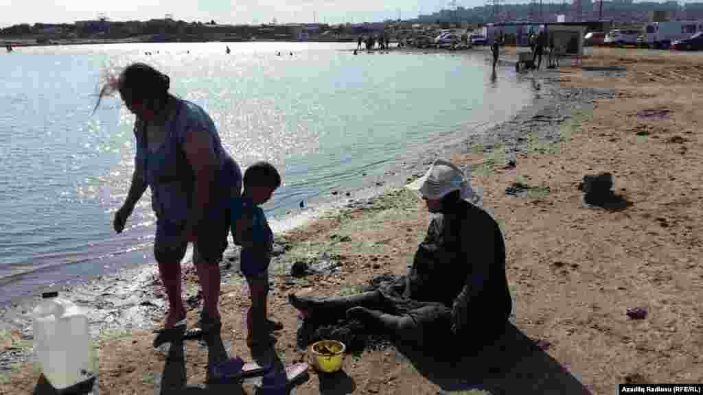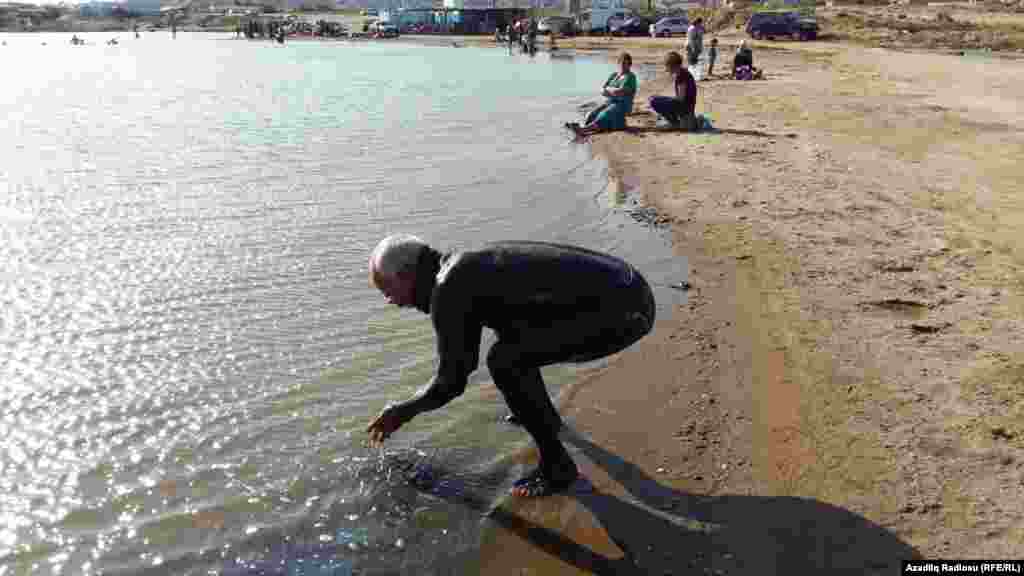 Bakı yaxınlığında palçıq gölündə çimənlər- FOTOLAR