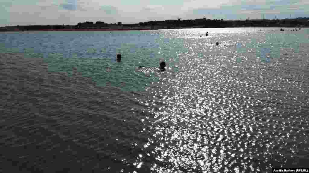 Bakı yaxınlığında palçıq gölündə çimənlər- FOTOLAR
