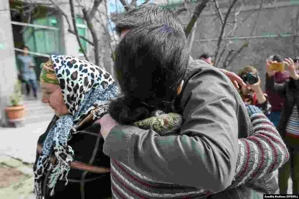 Həbsdən çıxan gənci ailəsi, dostları və qohumları qarşılayıblar.