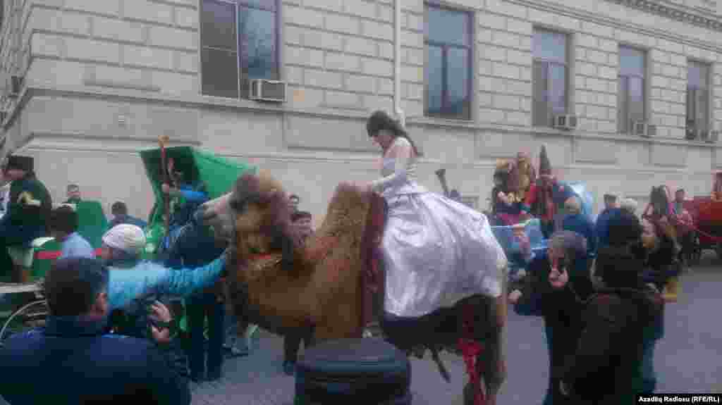 Saat 10.30-da metronun "İçərişəhər" stansiyasının yaxınlığından Novruz personajları - Bahar qızı, Kosa, Keçəl və musiqi qruplarının iştirakı, dəvələr, süvarilər faytonların müşayiətilə böyük karvan Suraxanı "Atəşgahı"na yola düşüb.