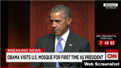 Barack Obama ABŞ prezidenti kimi ilk dəfə olaraq məsçidə baş çəkərkən bildirib ki, “müsəlmanlara qarşı siyasi ritorikaya ölkədə yer olmamalıdır”.